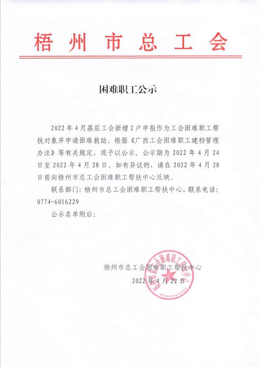 困難職工公示