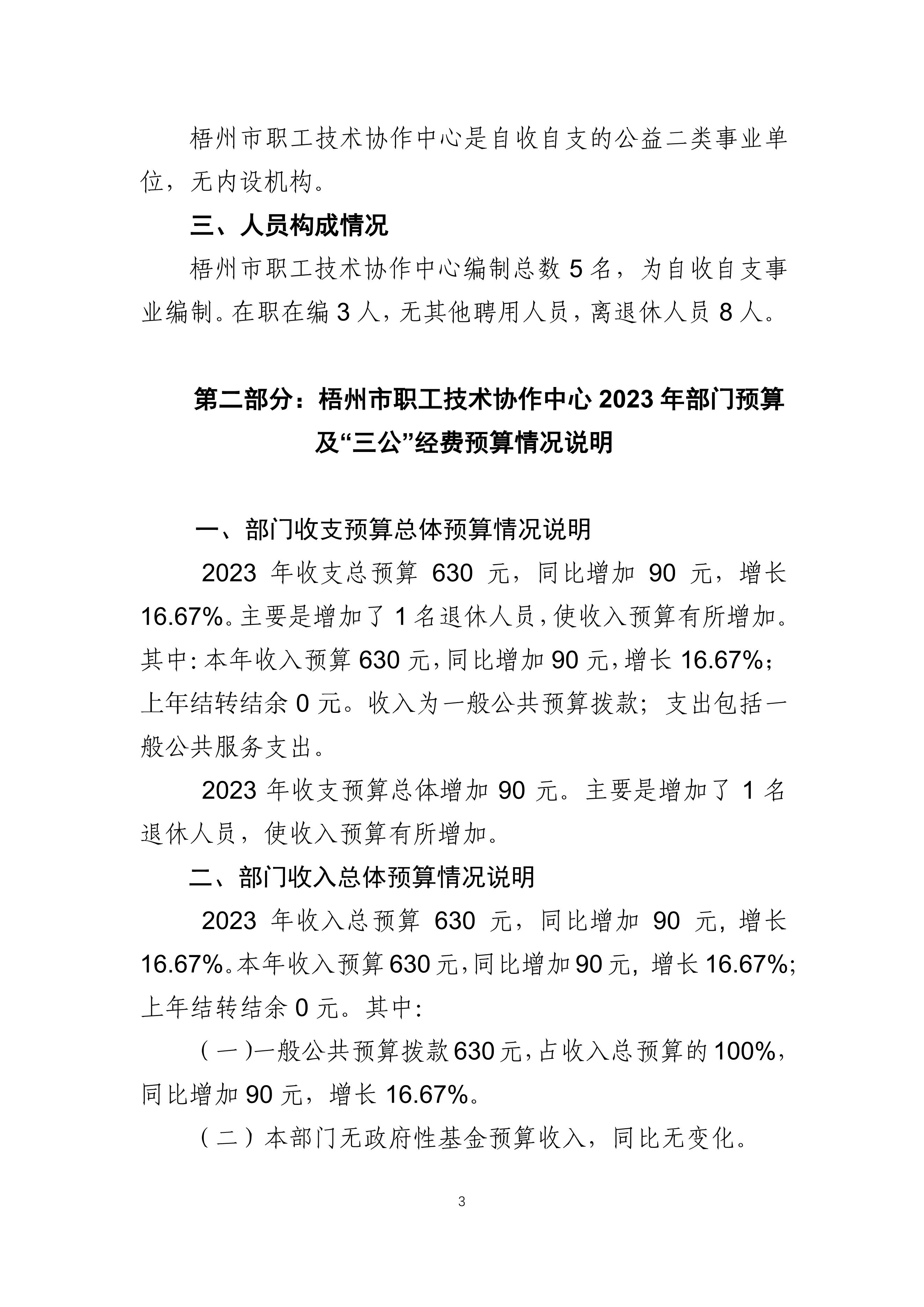 梧州市職工技術(shù)協(xié)作中心2023年度部門(mén)預(yù)算及”三公“經(jīng)費(fèi)預(yù)算情況說(shuō)明